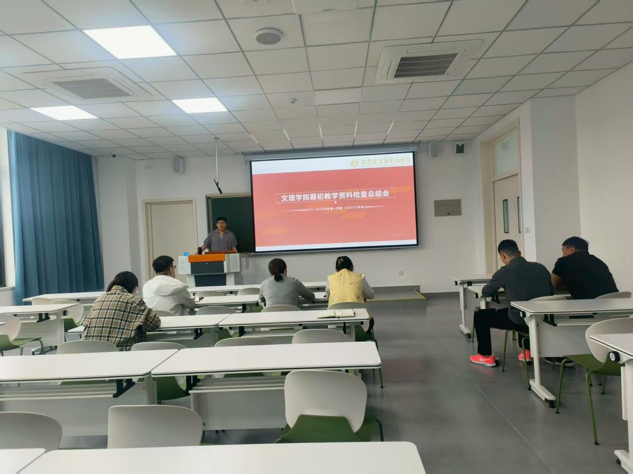为全面贯彻党的教育方针,落实立德树人根本任务,进一步规范教学管理,强化教学过程监控,切实提升课堂教学质量与人才培养水平,并为学生专升本考试提供坚实支撑,文理学院于2025年9月18日在融德楼A301隆重召开了2025-2026学年第一学期期初教学资料检查总结会。会议由文理学院李院长主持,学院教师参加了 此次会议。