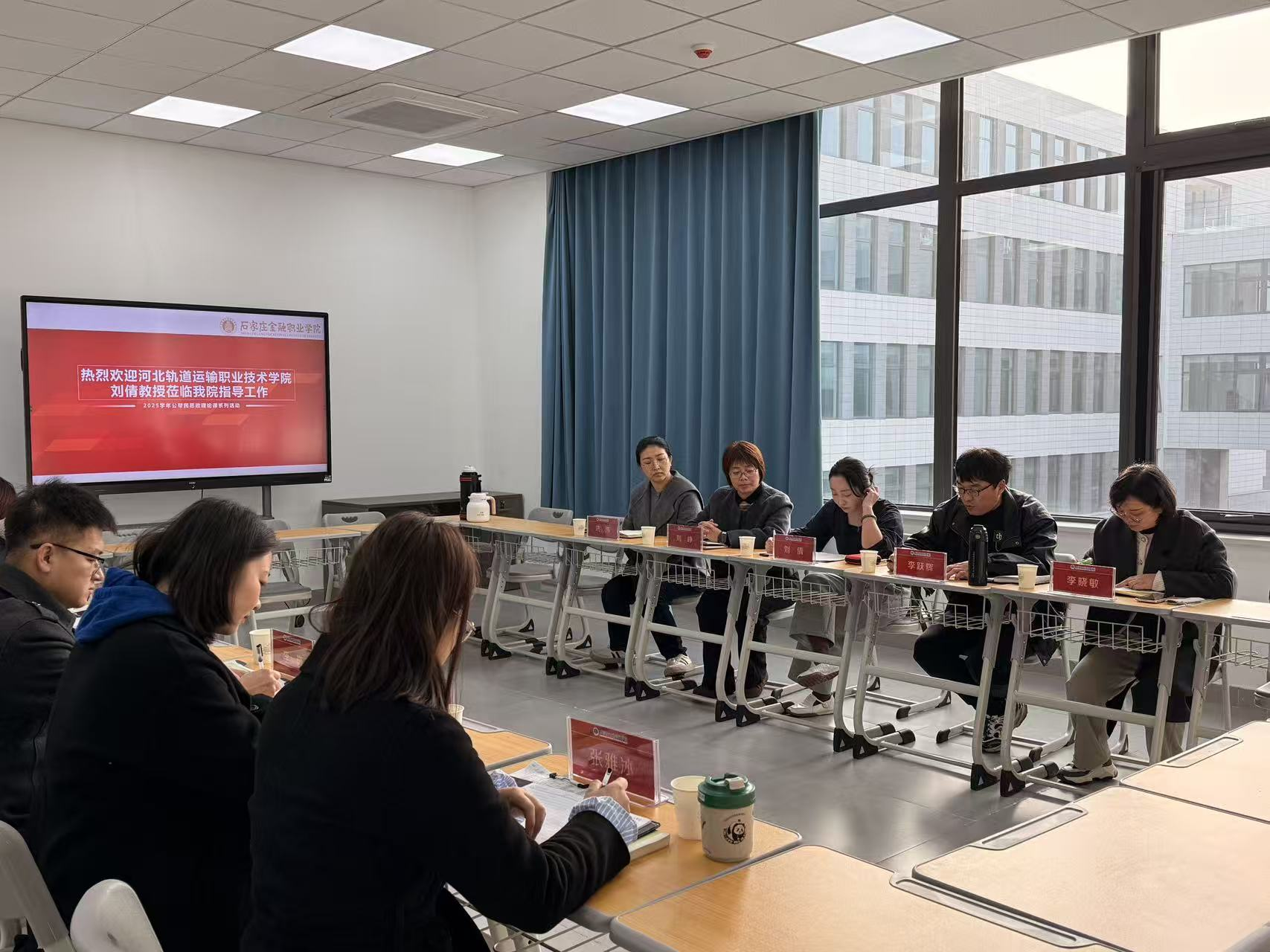 为深入贯彻落实《河北省公办高校帮扶民办高校思想政治理论课工作方案》精神,推动思政课建设高质量发展,促进公、民办高校优势互补与资源共享,2025年10月29日下午,河北轨道运输职业技术学院刘倩教授赴我校马克思主义学院开展“公帮民”调研交流活动。