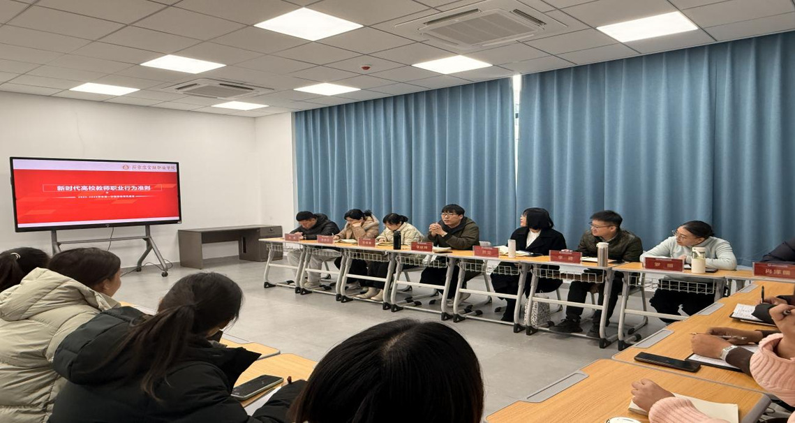 为深入贯彻落实立德树人根本任务,强化教师职业道德修养,明确新时代高校教师职业行为规范与底线要求,2025 年 12 月 2 日,石家庄金融职业学院文理学院组织全体教职工开展《新时代高校教师职业行为十项准则》(以下简称《准则》)专题学习会,以准则为纲筑牢师德师风建设防线,为金融人才培养赋能护航,人事处贾雯处长也出席了此次会议会议。